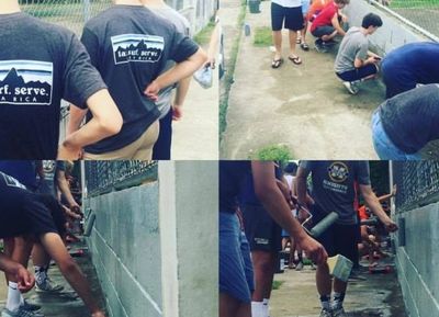 After surfing we headed to lunch, right up the street. After lunch we walked back to the hotel to change for our community service project at Samara Elementary. We spent about two hours there painting and cleaning the wall in front of the school. Drenched again, this time in sweat, we made our way back to the hotel hanging flyers and passing them out advertising for our game against the Costa Rican national team tomorrow.